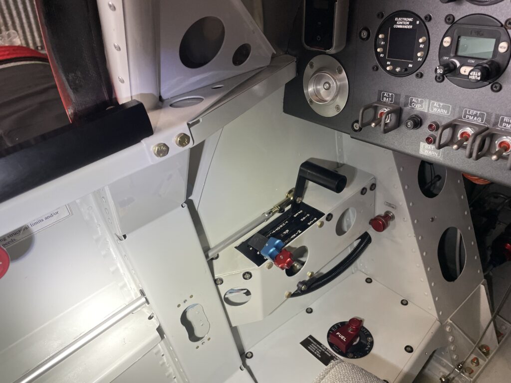 This is how I installed the rear seat throttle in my RV-8. I fly alone 99% of the time, and when I do fly with someone else, they are usually not a pilot. From time to time I fly with a pilot for instruction or flight reviews, and they would like a throttle. Another reason for the rear throttle would be as Hoot Gibson vividly recalled from his NASA T-38 days “dead pilot!” This is where the GIB needs to land the aircraft due to pilot incapacitation – hard to do without a throttle. I don’t have rudder, brakes, prop, or mixture in the back, which means a “dead pilot” landing would be ugly, but probably survivable.